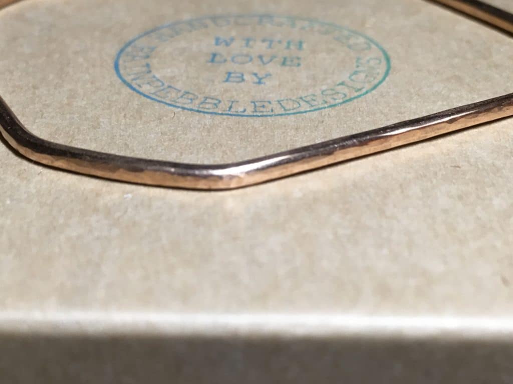 This lovely light weight stackable bangle is made in a square shape but with rounded corners.  This gives it eight sides and makes it very comfortable to wear.